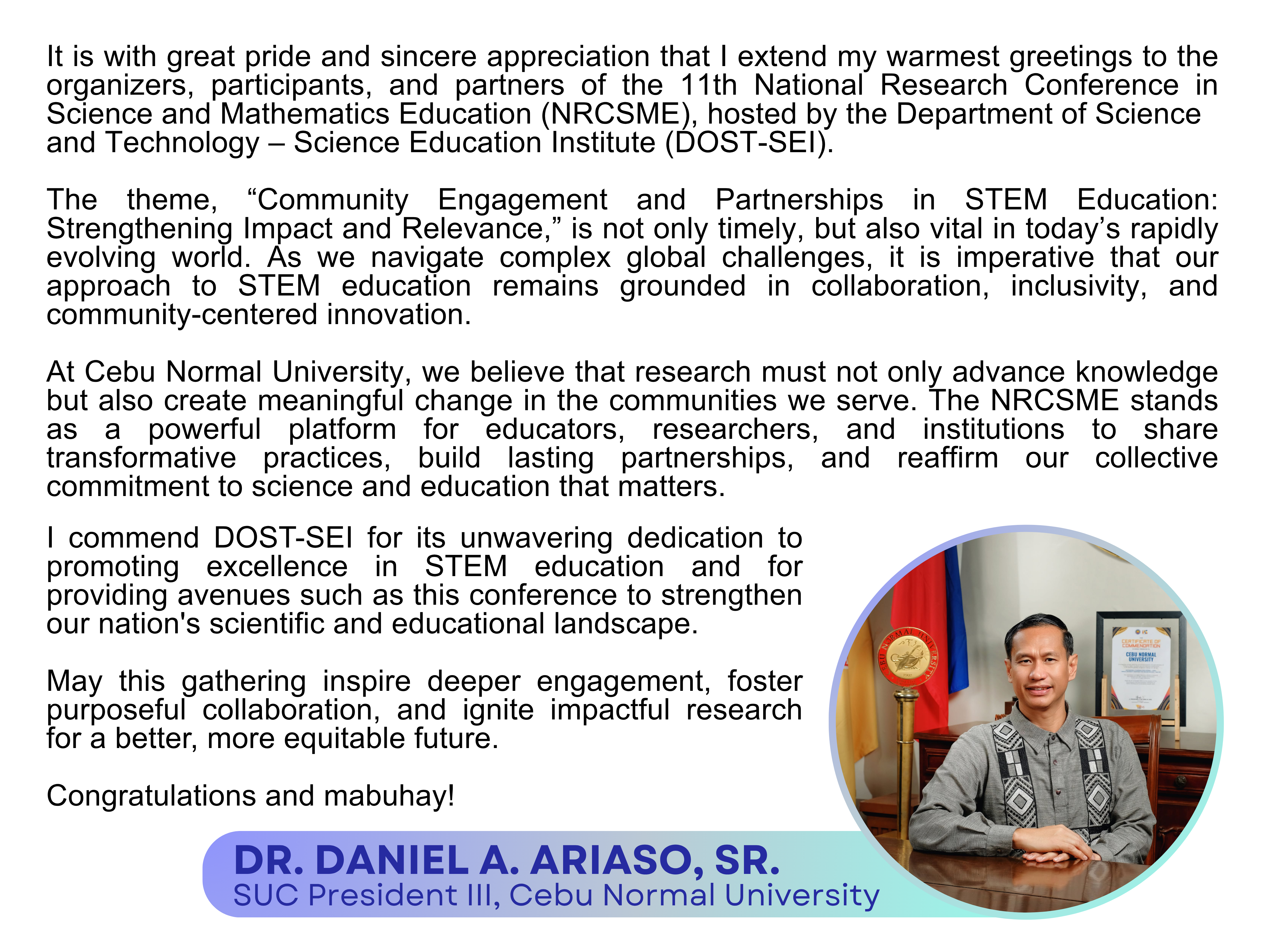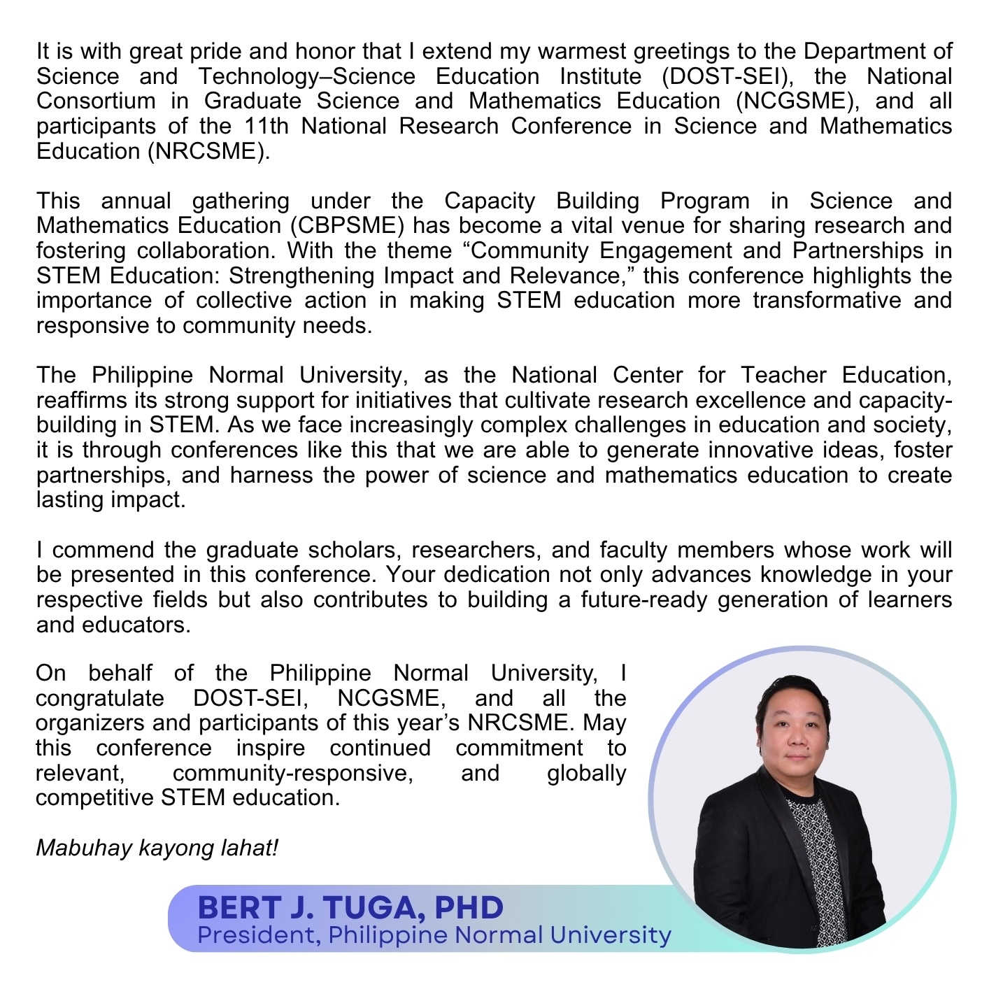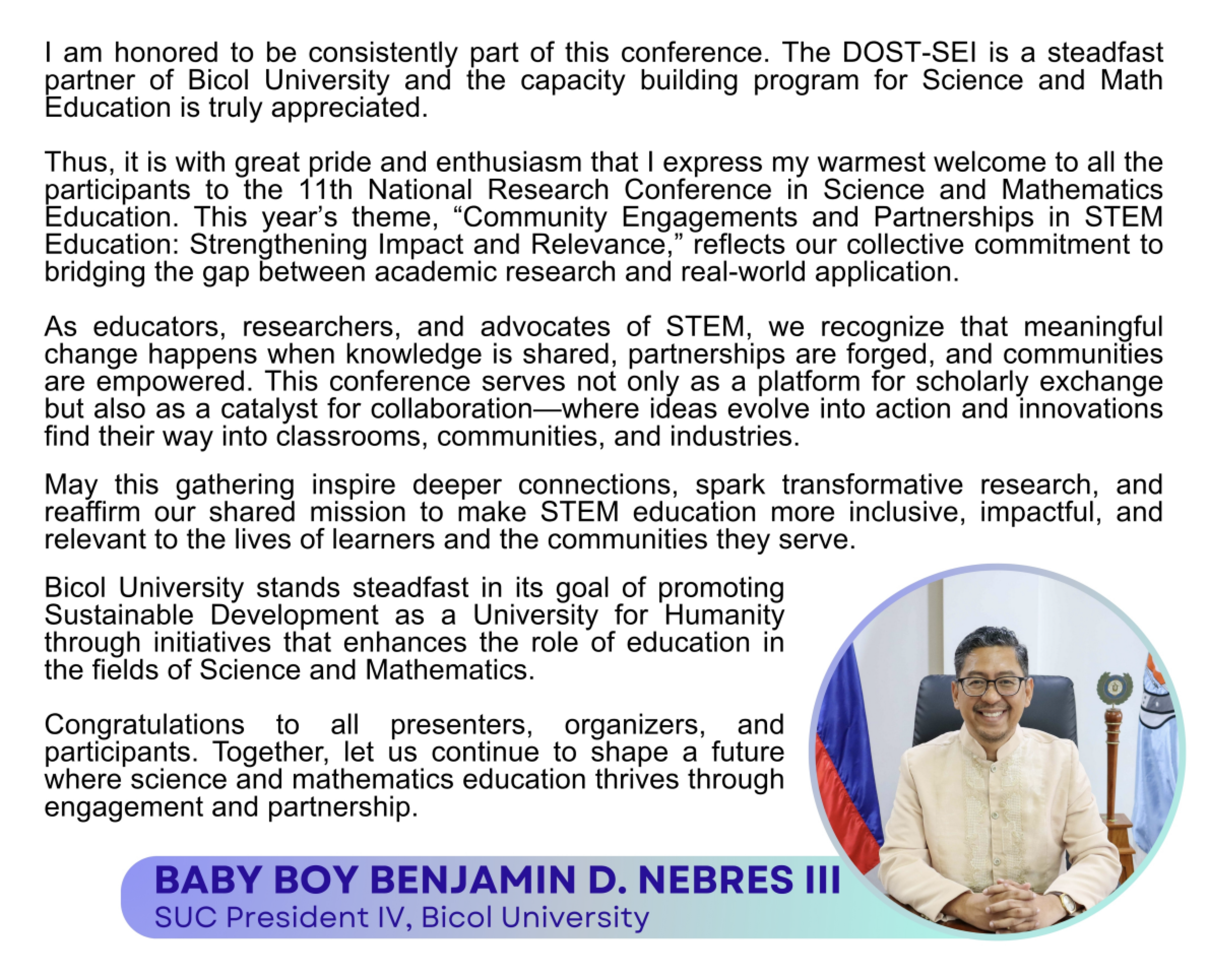 The Capacity Building Program in Science and Mathematics Education (CBPSME) scholarships are for the pursuit of Master’s and Doctoral degrees in Science and Mathematics Education available to DOST-SEI scholar-graduates, graduate students with academic honors, and qualified science and mathematics faculty of Teacher Education Institutions (TEIs) and consortium member-universities.